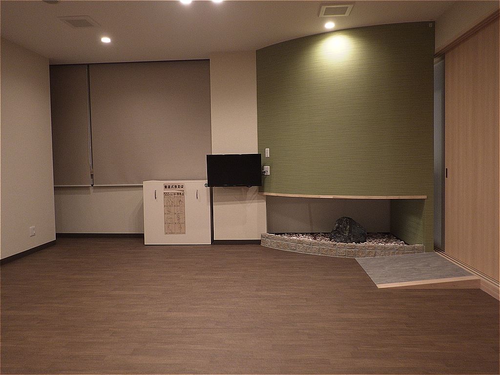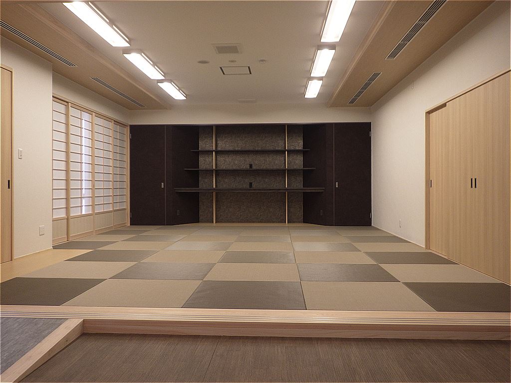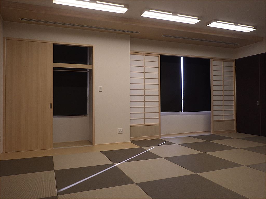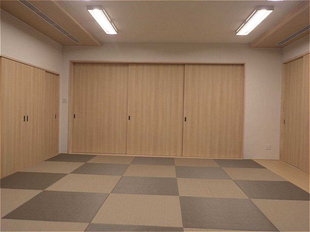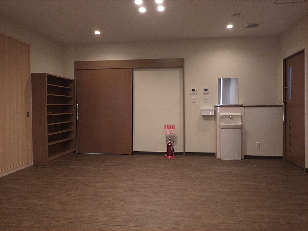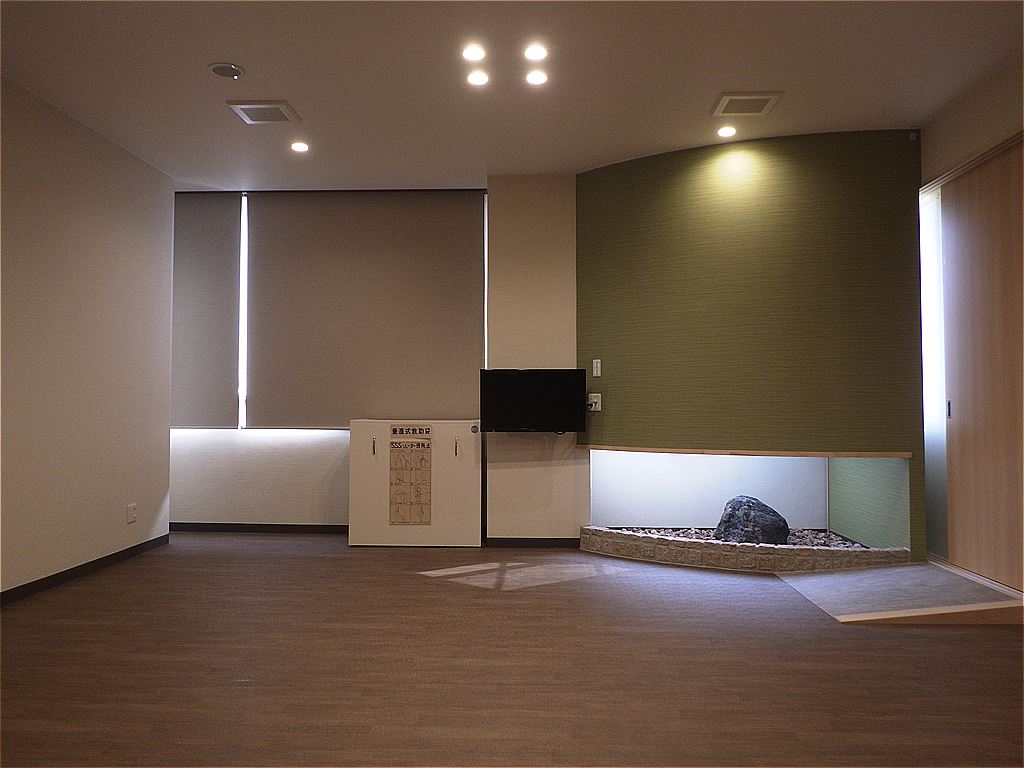 伊予会館改修工事の完成写真です。暖色中心の落ち着いたデザインにしました。