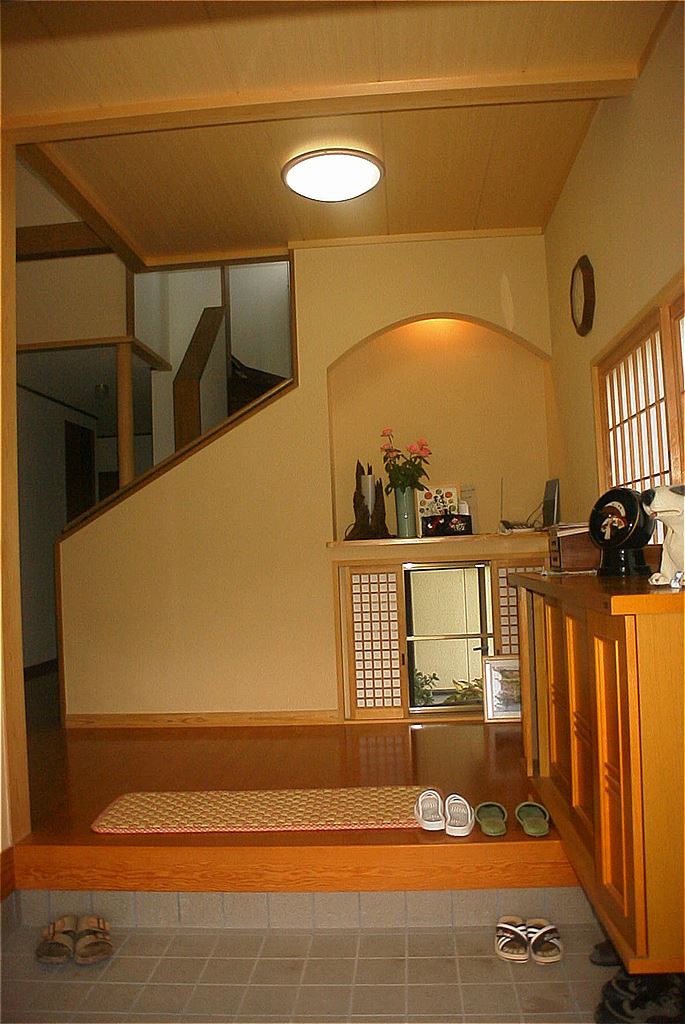 外観はあえてオーソドックスな日本の母屋をイメージしました。一旦玄関を入るとそこは和のテイストたっぷり。障子を効果的に使用し小さなところにもこだわりました。もちろん和といえば床の間も忘れていません。茶室にも使えるわびさびが感じられる空間です。また、和のテイストだけでなく吹き抜けがかもし出す広々とした明るいイメージや、朝のモーニングも楽しみなモダンなリビングと和と洋の融合がベストマッチの物件です。