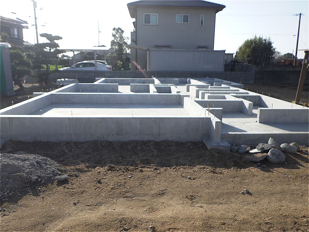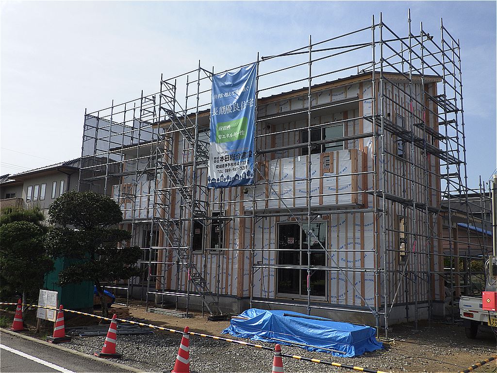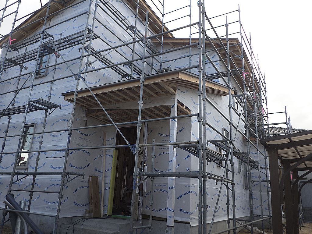 M様邸新築工事の施工状況です。基礎から家が出来ていく過程が見て取れます。もうすぐ完成です。