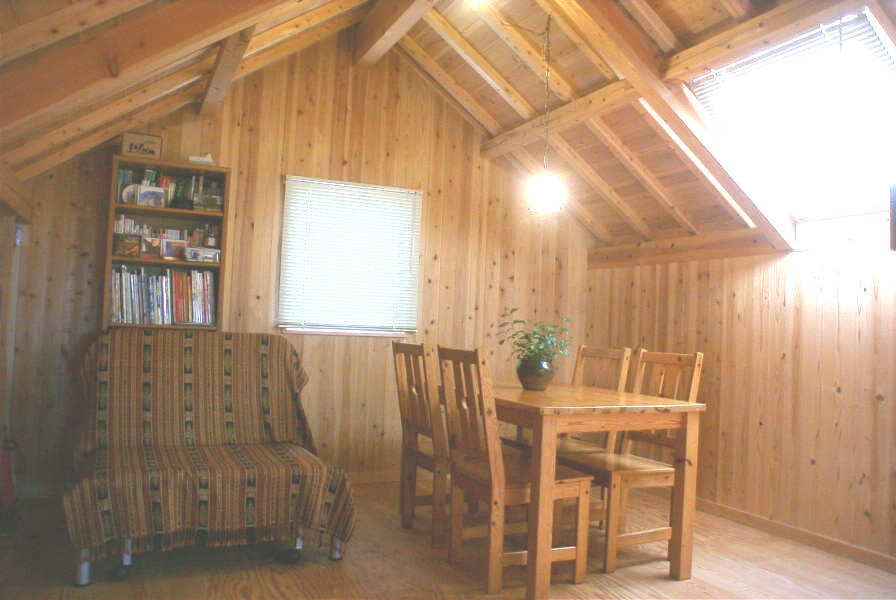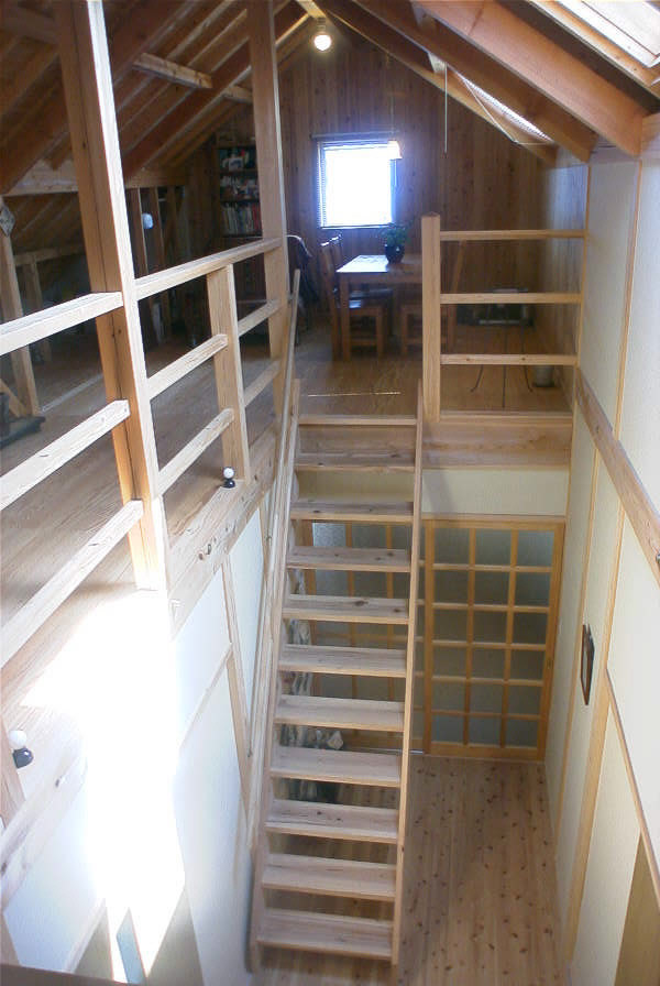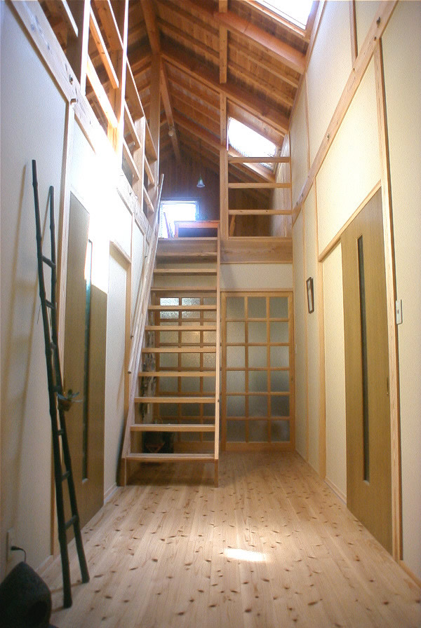 一見すると画廊か離れのアトリエのような外見。中は外観を裏切らない天然目の木のやさしさに包まれた空間があなたをお出迎え致します。1階のリビングも光一杯の暖かな場所ですが、一番のお勧めは2階部分にあるリビング。天窓から天の恵みの光をいっぱい浴びるいつまでも居たくなる暖かい空間です。手洗いひとつとっても独創的な他に類をみないオンリーワンの家です。